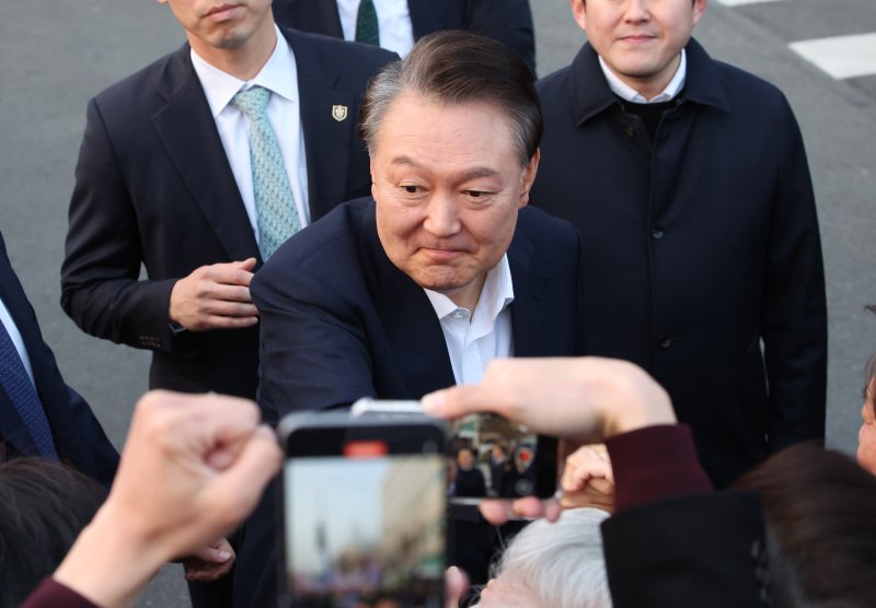 지난 8일 석방된 윤석열 대통령이 서울 용산구 한남동 관저 입구에서 지지자들에게 인사하고 있다. /사진=뉴시스