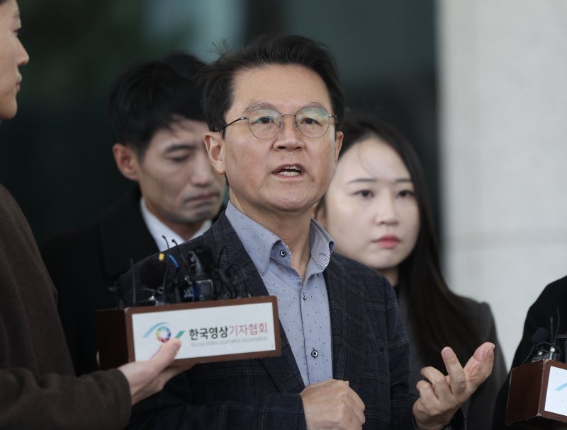 윤석열 대통령 변호인단 윤갑근 변호사가 13일 오후 서울 서초구 서울고등검찰청 앞에서 법원의 윤 대통령 구속 취소 결정을 둘러싼 논란에 대한 입장을 밝히고 있다. 뉴시스