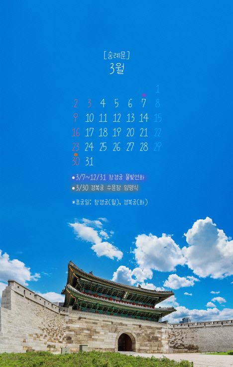 궁능유적본부는 "먼저 공개된 3월 배경화면을 시작으로 매월 말 다음 달 배경화면이 새롭게 공개된다"고 전했다.