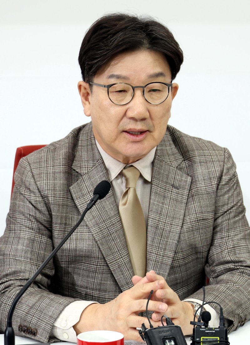 [서울=뉴시스] 조성봉 기자= 권성동 국민의힘 원내대표가 19일 오후 서울 여의도 국회에서 열린 현안관련 기자간담회에서 취재진의 질문에 답변하고 있다. 2025.03.19. suncho21@newsis.com /사진=뉴시스