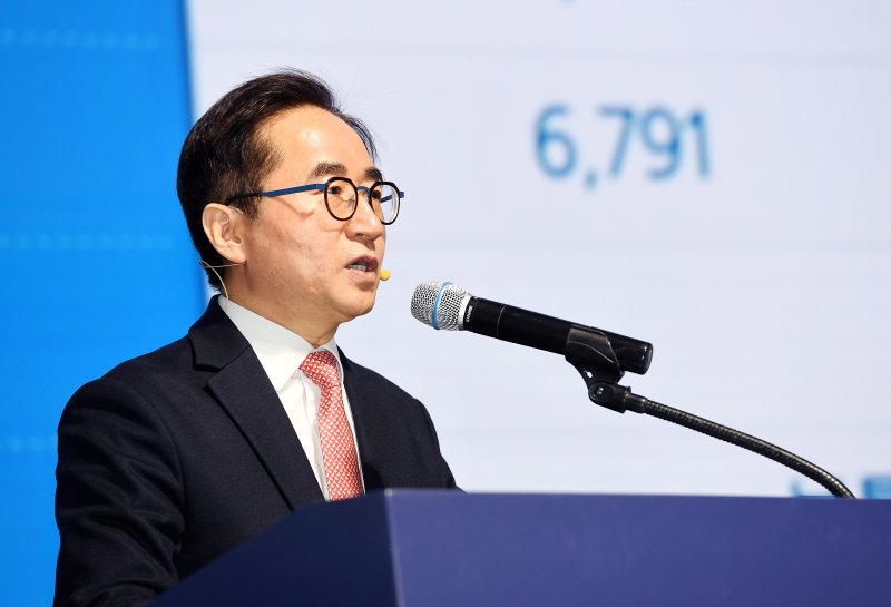 장덕현 삼성전기 대표이사 사장이 19일 서울 서초구 양재동에서 열린 제52기 정기주주총회에서 발언하고 있다. 삼성전기 제공