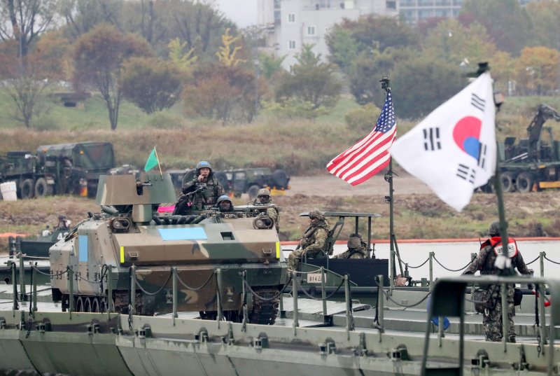 지난해 10월 22일 오후 경기 여주시 남한강에서 열린 한미연합 제병협동 도하훈련에서 제7공병여단과 미2사단/한미연합사단 장병들이 도하 훈련을 실시하고 있다(자료사진). 사진=공동취재단