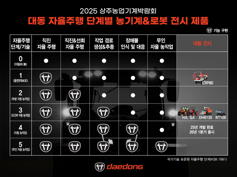 대동이 오는 25일부터 28일까지 경북 상주시 태평성대 경상감영공원에서 열리는 '2025 상주 농업기계 박람회'에서 자율주행 농기계 라인업을 선보인다. 대동그룹 제공