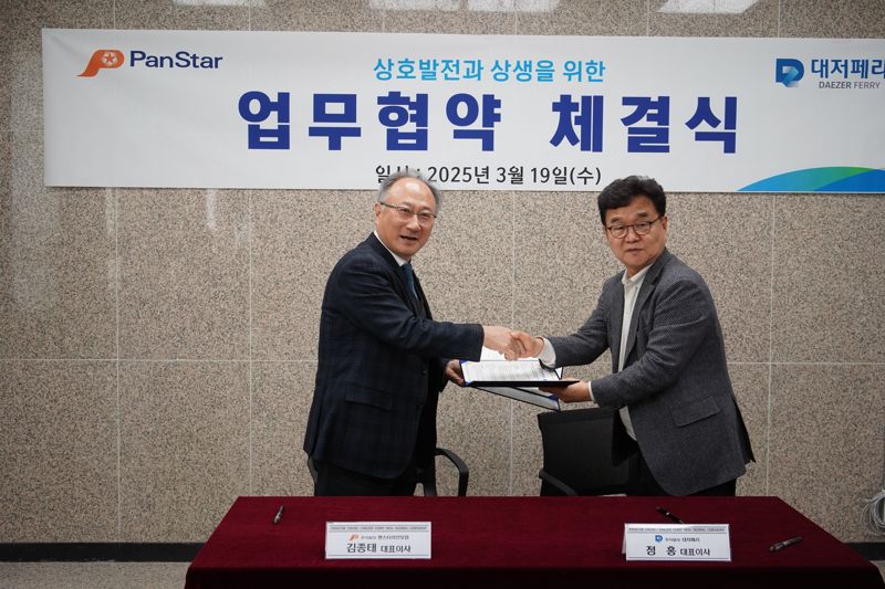 협약식은 19일 오후 경북 포항의 대저페리 대회의실에서 김종태 팬스타라인닷컴 대표와 정 홍 대저페리 사장 등 양사 관계자 20여명이 참석한 가운데 열렸다.