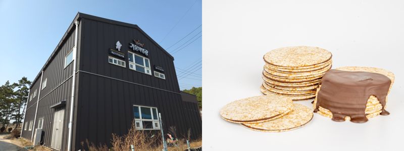 전남도가 지역 경제와 공동체 발전을 위해 마을기업 육성에 박차를 가하고 있다. 사진은 올해 모두애 마을기업으로 선정된 땅끝햇살찬영농조합법인(사진 왼쪽)이 만든 현미초코샌드칩(오른쪽). 전남도 제공