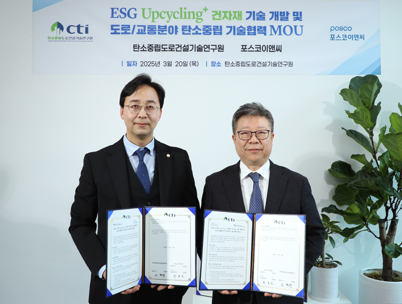 이번 업무협약을 통해 포스코이앤씨는 현장에서 발생하는 건설폐기물의 현황과 업사이클링 건자재 기술 개발을 위한 연구결과 공유, 도로 구조물 및 도로 배수층 포장기술 등을 공동 연구해 도로 구조물 분야의 건자재 기술을 추가 개발할 계획이다.