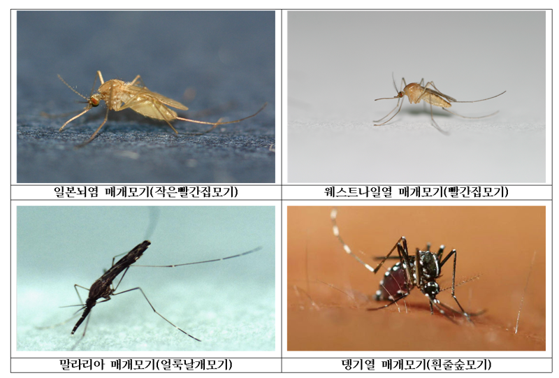 국내 모기 매개 감염병으로는 일본뇌염과 말라리아가 발생하고 있어 이에 대한 집중 감시를 수행하는 한편, 뎅기열 등 해외 감염병의 유입에 대비해 전국적인 매개체 감시 사업도 매년 수행하고 있다.