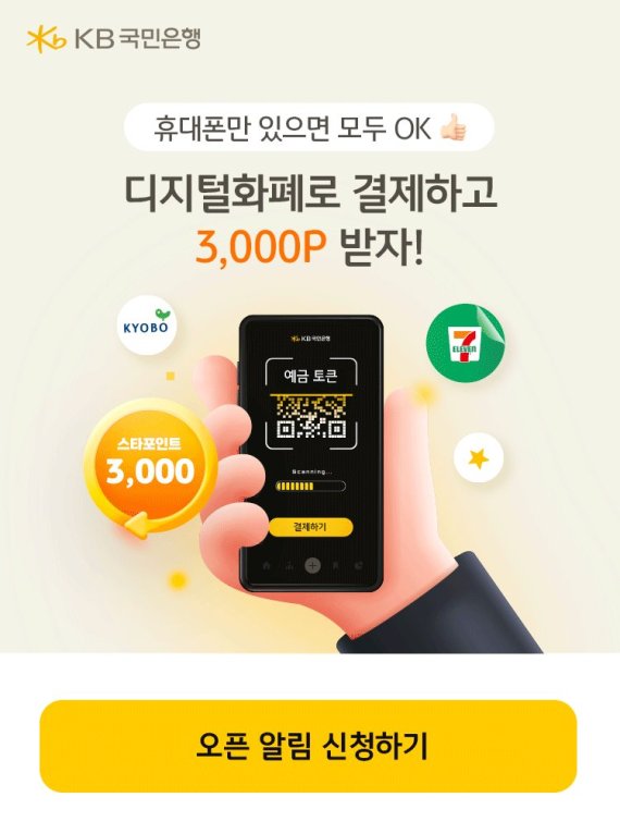 KB스타뱅킹을 통해 ‘예금 토큰’으로 결제한 고객들은 3000 스타포인트를 받을 수 있다. 세븐일레븐 결제 시 10% 할인 등 혜택도 제공받을 수 있다.