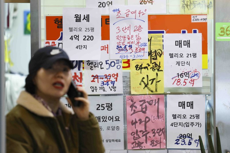 19일 서울 송파구의 한 부동산 앞에 아파트 시세 안내문이 붙어 있다. 뉴시스
