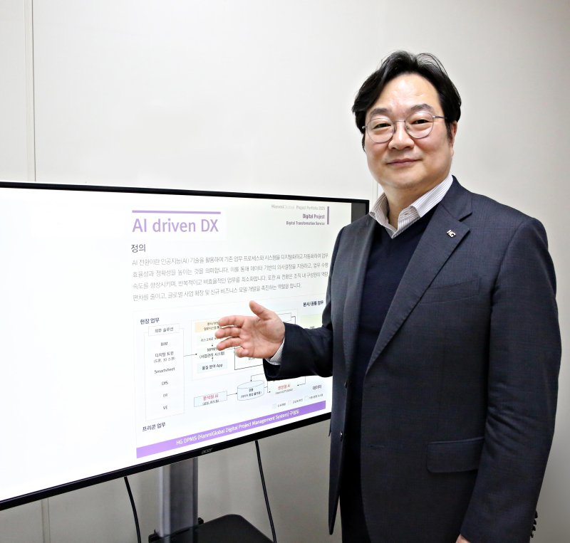 26일 박상혁 한미글로벌 AX실장(사진)은 "건설 관련 업무에 인공지능이나 디지털 기술을 활용하는 것은 단순히 기술을 도입하는 차원이 아니다"라며 "완전히 새로운 가치를 만드는 일"이라고 말했다. 업무의 효율성을 극대화해 시간을 절약함으로써 고품질 업무에 역량을 쏟을 수 있다는 것이다.