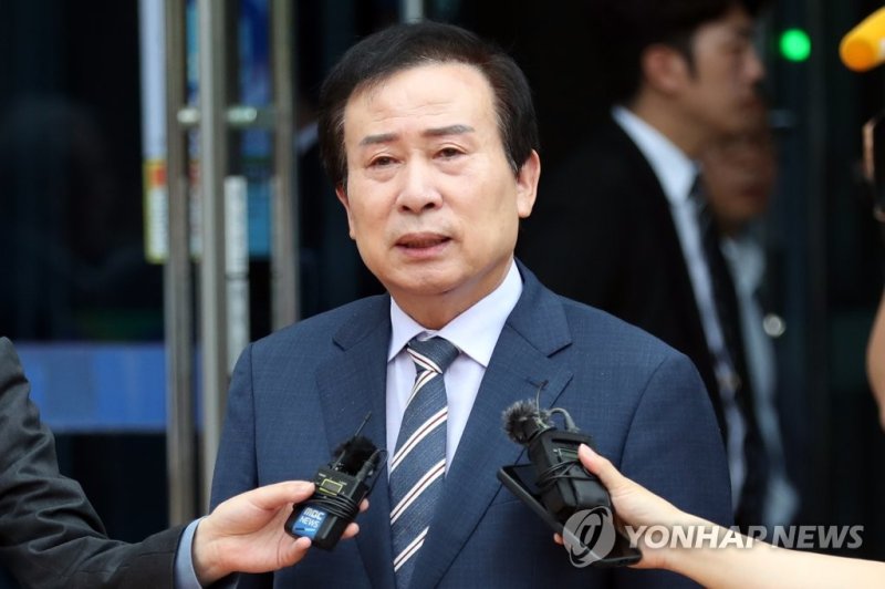 공직선거법 위반 혐의로 재판에 넘겨져 1심에서 무죄를 선고받은 박홍률 전남 목포시장이 지난 2023년 7월 13일 광주지방법원 목포지원에서 열린 선고 공판에 출석한 뒤 소감을 밝히고 있다. /사진=연합뉴스