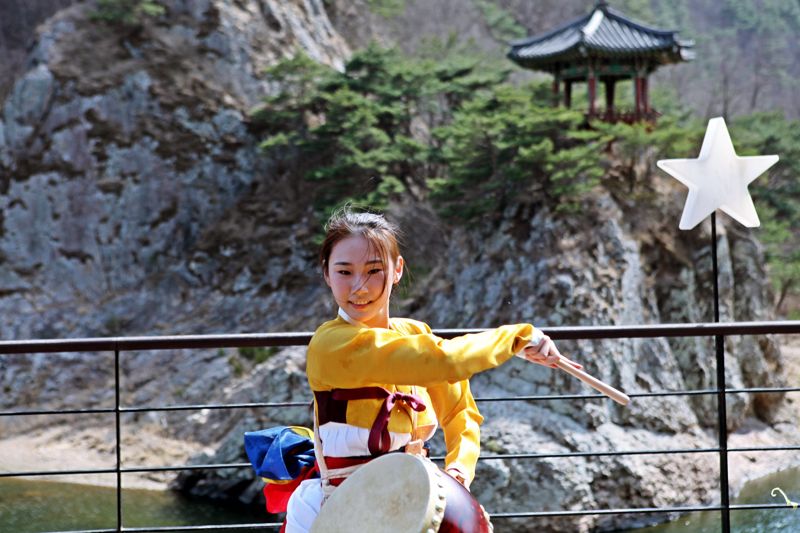 27일 전통문화예술양성위원회에 따르면 유현지와 무아무용단은 지난 23일 충북 영동군 월류봉 일원에서 '2025 영동세계국악엑스포 성공 기원'이라는 주제로 한국의 전통 소리와 춤이 지닌 풍류의 멋을 관광객들에게 선보였다.