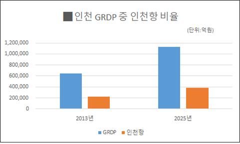인천 지역내총생산 대비 인천항 생산유발액의 비중은 2013년의 33.8%보다 0.1%포인트 증가다. 이는 생산유발액이 많이 늘어난 만큼 인천 지역내총생산(GRDP) 또한 늘어난 결과로 볼 수 있다.
