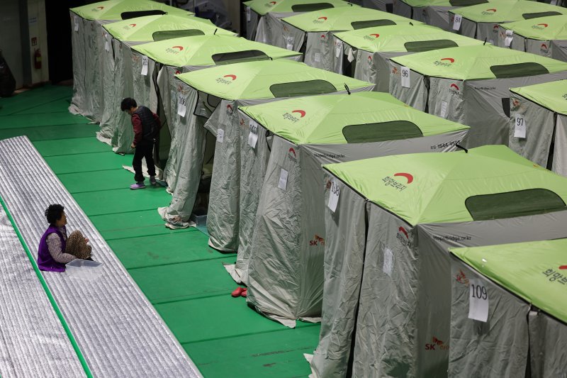 산불 피해 이재민들이 30일 오전 경북 안동시 안동체육관에 마련된 대피소에서 생활을 이어가고 있다. 사진=뉴시스