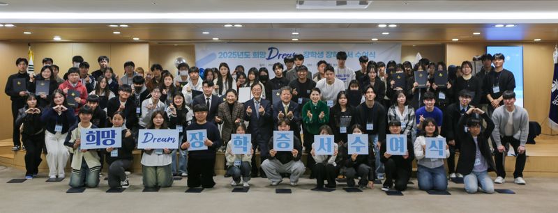 지난 28일 한국증권금융 본사에서 열린 '2025년도 희망 Dream 장학생 장학증서 수여식'에서 한국증권금융 꿈나눔재단 김정각 이사장과 희망 Dream 장학생으로 선발된 학생들이 기념촬영을 하고 있다. 한국증권금융 제공