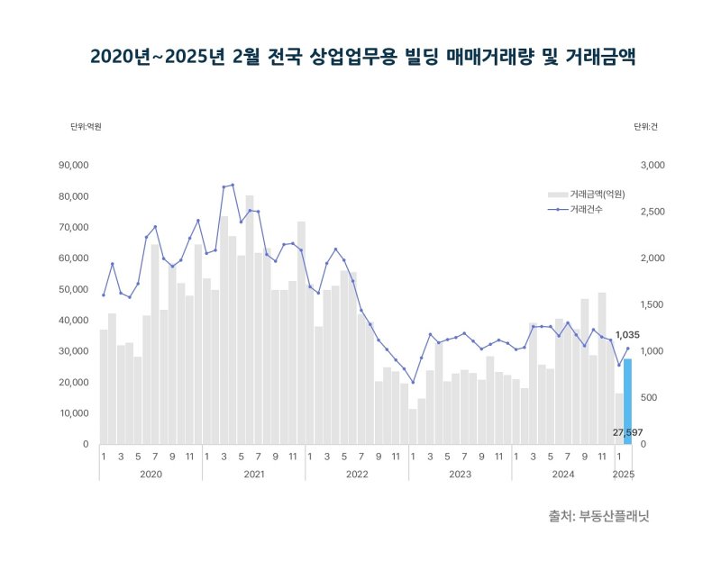 부동산플래닛이 1일 발표한 2025년 2월 전국 상업업무용 빌딩 거래 시장 분석. 부동산플래닛 제공