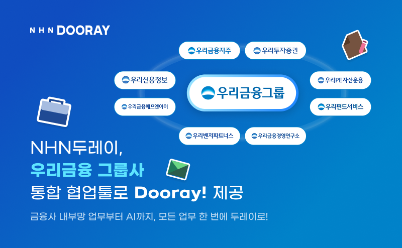 [파이낸셜뉴스] NHN두레이는 우리금융지주를 비롯한 우리금융그룹 내 8개 그룹사에 통합 협업도구로 두레이(Dooray!)를 도입했다고 1일 밝혔다.