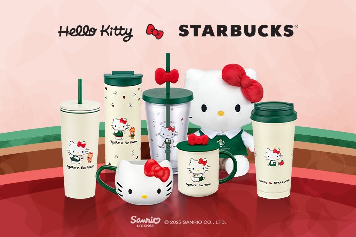 헬로 키티 컬래버레이션 상품은 지난해 출시된 '헬로 키티 리본 리드 세라믹 머그 473ml', '헬로 키티 세라믹 머그 355ml', 'SS 헬로 키티 콜드컵 473ml', '헬로 키티 바리스타 인형' 등 4종에 새로운 상품 3종을 추가했다.