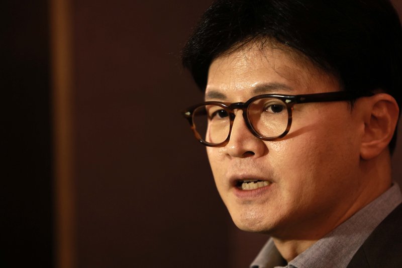 한동훈 전 국민의힘 대표가 24일 오후 서울 중구 웨스틴조선 서울호텔에서 열린 산학연포럼에서 'AX 시대를 위한 정치'를 주제로 강연하기 전 취재진 질문에 답하고 있다. 뉴시스