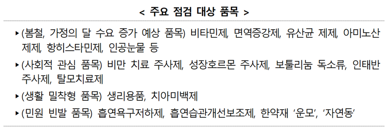 주요 점검내용은 △제품 용기·포장의 표시 사항 적정성 △허가받은 효능·효과를 벗어난 표시·광고 △소비자 오인 우려 광고 △전문의약품의 불법 대중 광고 등이다.