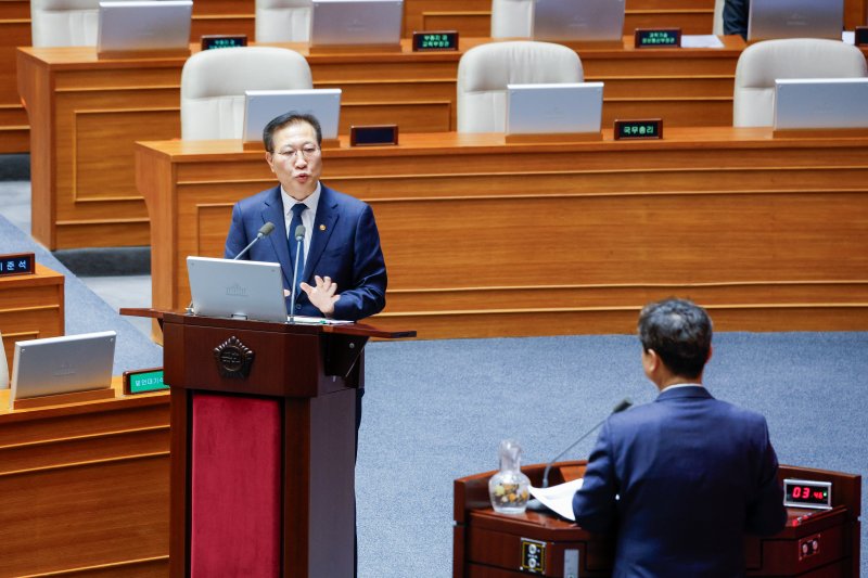 박성재 법무부 장관이 14일 오후 서울 여의도 국회 본회의장에서 김영배 더불어민주당 의원의 정치·외교·통일·안보에 관한 대정부질문에 답하고 있다. /사진=뉴스1화상