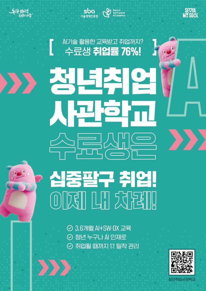 주용태 서울시 경제실장은 “모든 게 인공지능화되는 AI제이션 시대를 맞아 청년들의 취업 기회를 확대하기 위해 청년취업사관학교 교육과정을 AI 중심으로 재편하고 교육생 선발 규모 또한 확대했다”며 “많은 청년들이 청년취업사관학교에 지원해 기업 현장에서 필요로 하는 AI 역량을 갖추고 취업에 성공하기를 바란다”고 밝혔다.