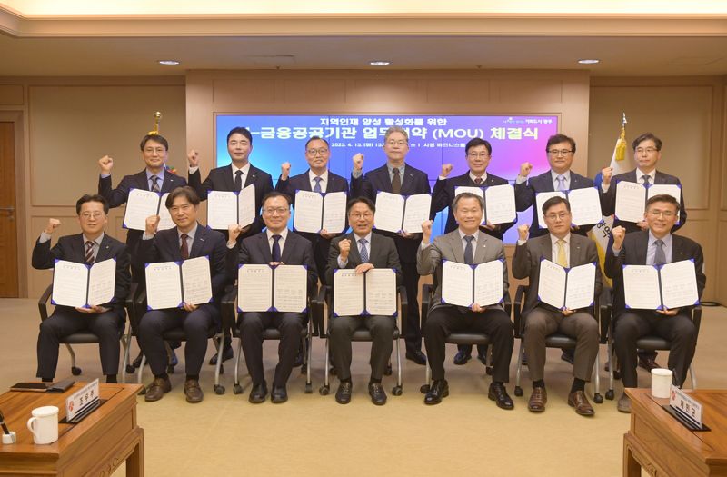 이를 위해 15일 시청 비즈니스룸에서 광주에 지역본부를 둔 13개 금융공공기관들과 '지역 인재 양성 활성화를 위한 업무협약'을 체결했다. 13개 금융공공기관은 한국자산관리공사, 금융감독원, 기술보증기금, IBK기업은행, 서민금융진흥원, 신용보증기금, 신용회복위원회, 중소벤처기업진흥공단, 한국무역보험공사, 한국산업은행, 한국수출입은행, 한국은행, 한국주택금융공사 등이다.