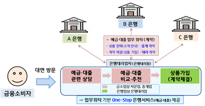 예금·대출 중개서비스와 은행대리업 등 제도 간 연계 활용 예시. 금융위원회 제공.