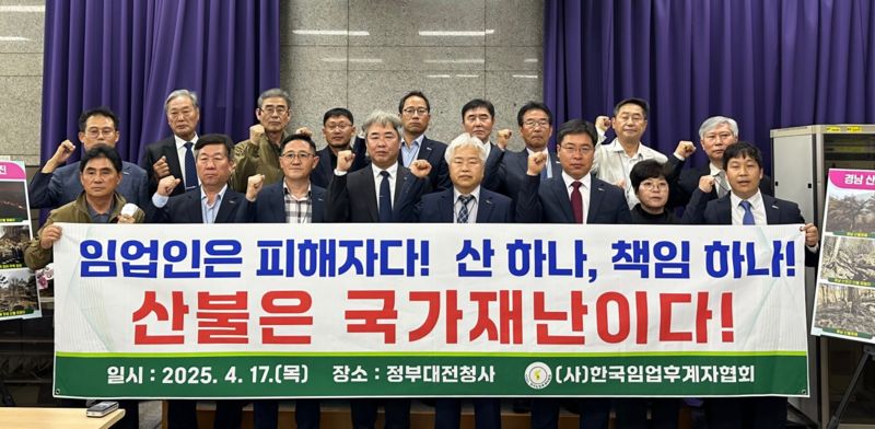 한국임업후계자협회 산림재난극복 산불특별위원회는 17일 정부대전청사에서 기자회견을 갖고 경북·경남 대형 산불과 관련한 '임업인 8대 요구안'을 담은 성명서를 발표했다. 한국임업후계자협회는 전국 130개 시군협의회, 9개 도지회로 구성된 임업인 조직으로 회원수는 4800여명이다.