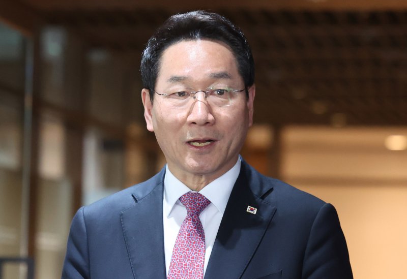국민의힘 대선 출마를 선언한 유정복 인천시장이 지난 16일 오후 서울 중구 서울시청에서 오세훈 서울시장과 회동을 마친후 취재진의 질문에 답변하고 있다. 뉴시스