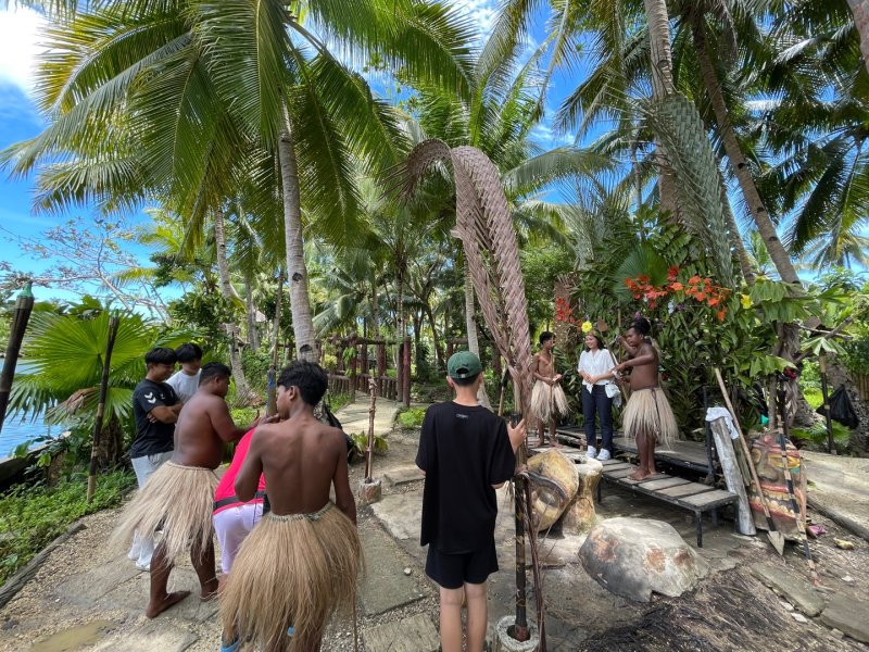 하나투어 희망여행 프로젝트 참가자들이 필리핀 보홀에서 원주민들과 함께 문화체험 활동을 펼치고 있다. 하나투어 제공