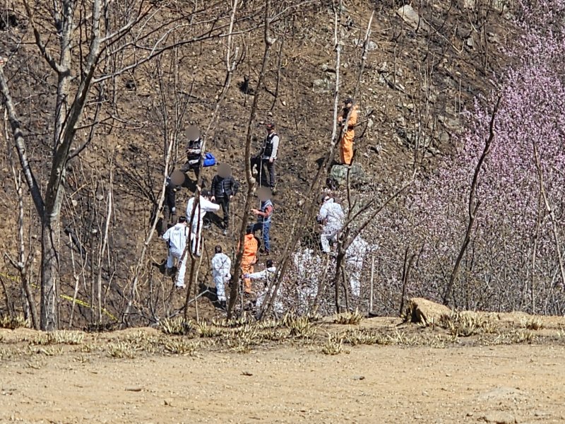 경남경찰청과 국립과학수사연구원이 4일 오전 11시부터 경남 산청·하동 대형 산불의 최초 발화지점에서 합동 감식을 진행하고 있다. 뉴스1