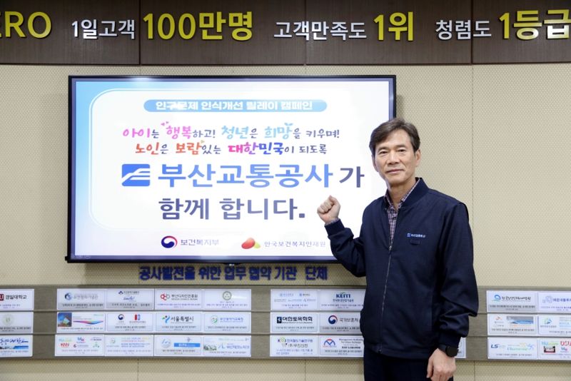 '인구문제 인식개선 릴레이 캠페인'에 동참한 이병진 부산교통공사 사장. 부산교통공사 제공
