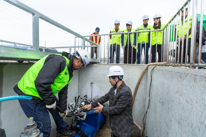 상수도관 세척 시연을 참관하는 아리수교육센터 교육생들의 모습. 서울시 제공