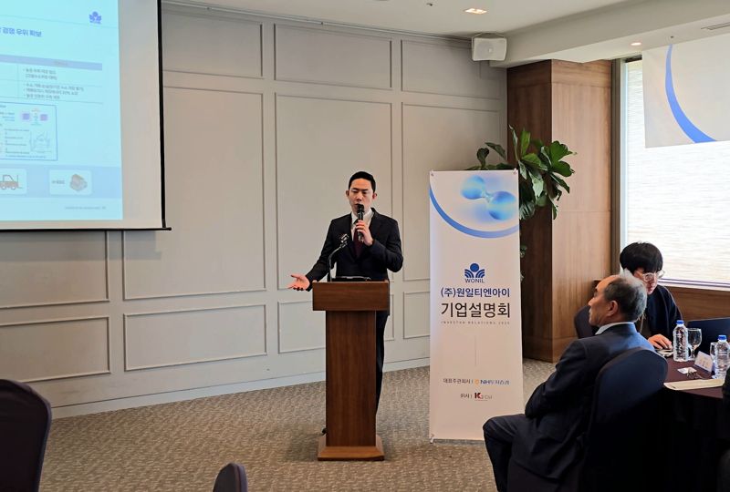 21일 서울 여의도에서 열린 IPO(기업공개) 기자간담회에서 이승준 전무가 회사를 소개하고 있다. 원일티엔아이 제공.