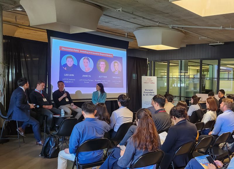 21일(현지시각) 롯데벤처스 엘캠프 실리콘밸리 4기 프로그램 참가자들이 미국 시장 진출 인사이트를 공유하는 패널 토론회를 진행하고 있다. 롯데그룹 제공