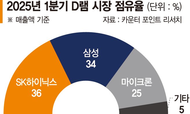앞서 시장조사기관 카운터포인트리서치는 올해 1·4분기 매출액 기준 SK하이닉스가 삼성전자를 제치고 처음으로 글로벌 D램 점유율 1위를 기록했다고 발표한 바 있다.