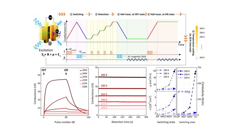 연구팀은 텅스텐 산화물을 사용해 이 ECRAM를 ‘다중 단자 구조’로 제작하고, 극저온(-223℃, 50K)부터 상온(300K)까지 다양한 온도에서 내부의 전자 움직임을 관찰할 수 있는 ‘평행 쌍극자 홀 측정 기술’을 적용했다. 그 결과, 연구팀은 ECRAM 내부 산소 결함이 약 0.1eV의 얕은 도너 준위를 형성하며, 전자가 쉽게 이동할 수 있는 일종의 ‘지름길’을 만든다는 사실을 세계 최초로 관찰했다.