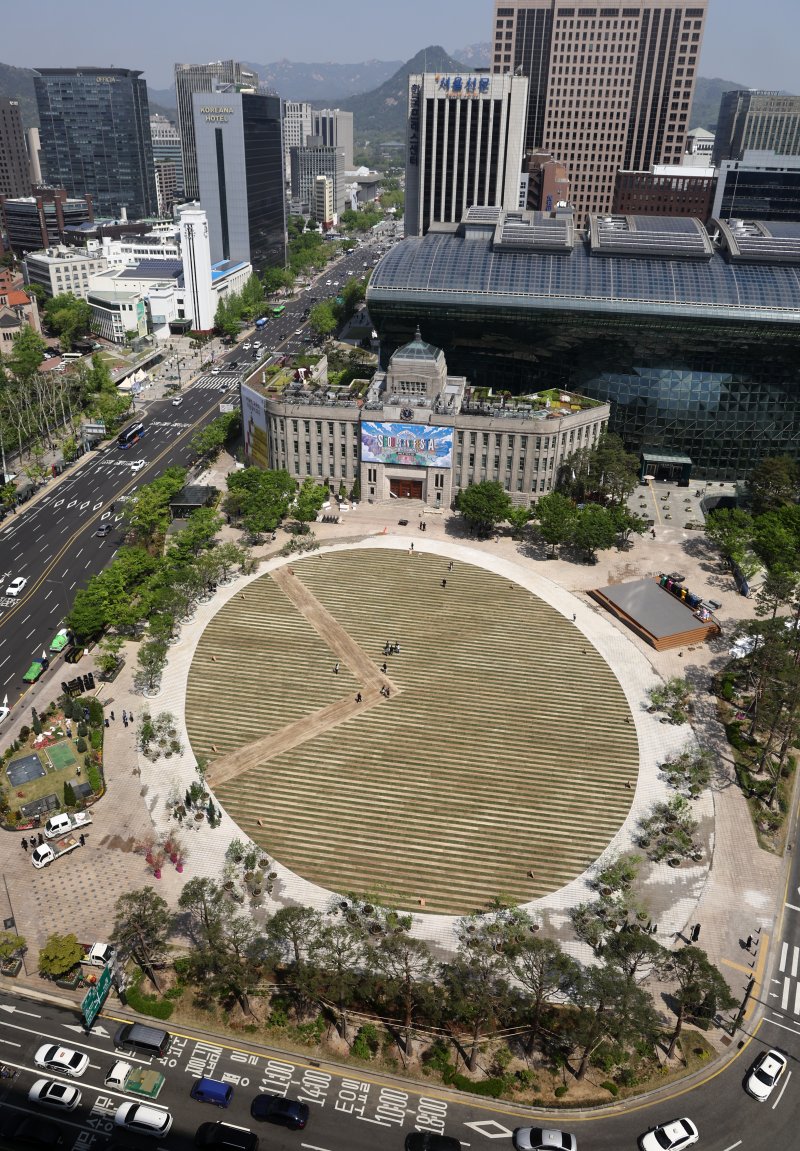 서울시는 숲과 정원의 개념을 더해 문화·예술·여가·자연을 동시에 즐길 수 있도록 서울광장을 새단장 해 28일 공개했다. 새단장한 서울광장 모습. 연합뉴스