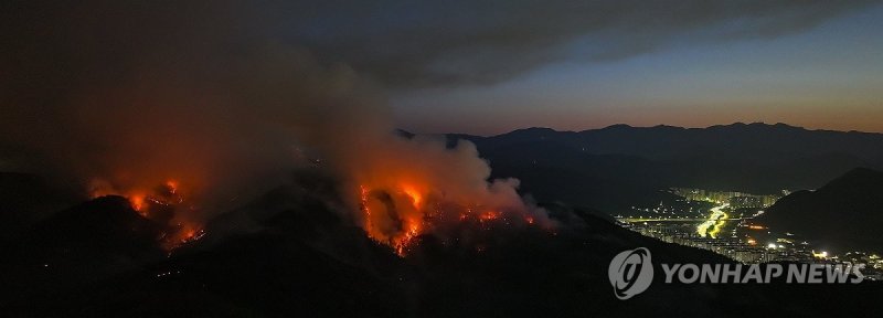 산림 당국은 "건조한 날씨로 산불 확산 속도가 빨랐던데 반해, 임도가 없는 험준한 지형에서 통로를 개척해가며 진화작업을 이어간 탓에 야간 진화에 어려움이 있었다"며 "주불 진화에 총력을 다하고 있다"고 밝혔다.