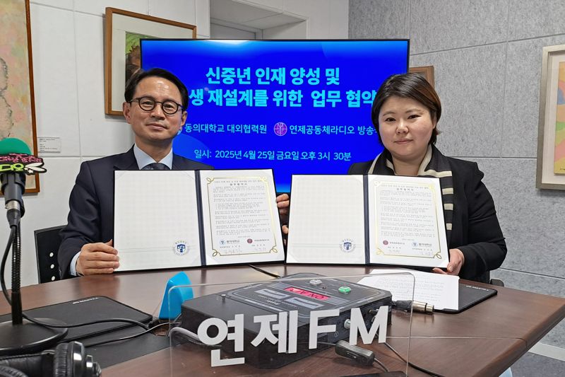 [파이낸셜뉴스] 동의대 대외협력원은 지난 25일 연제공동체라디오 방송국에서 연제공동체라디오(대표 정경희)와 신중년 인재 양성 및 인생 재설계 지원을 위한 업무 협약을 체결했다.