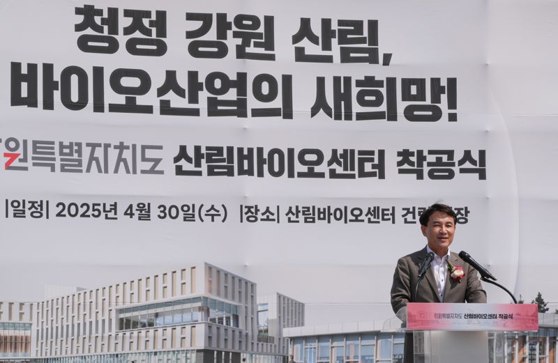 강원자치도는 30일 춘천시 남산면 광판리 일원에서 산림바이오센터 착공식을 가졌다. 2026년 완공되는 산림바이오센터는 산림자원을 활용해 의약품, 화장품 등 고부가가치 바이오 제품을 개발하는 연구시설이다.