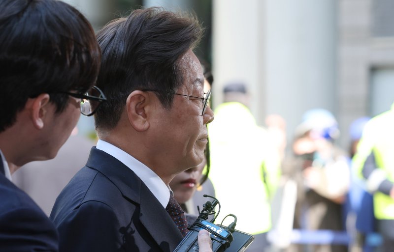 이재명 더불어민주당 대선후보가 29일 오전 서울 서초구 서울중앙지방법원에서 '대장동 배임 및 성남FC 뇌물 의혹' 혐의와 관련 공판에 출석하고 있다. 사진=뉴시스