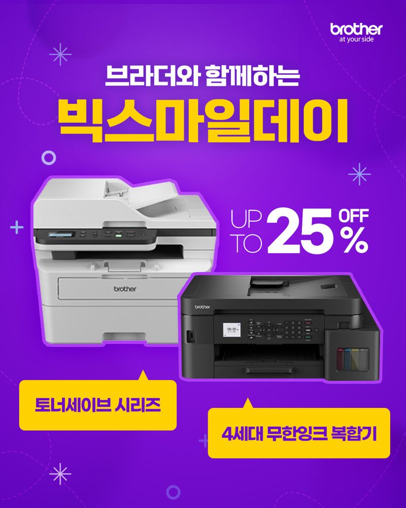 이번 행사에서는 잉크젯 라인의 ‘4세대 무한잉크복합기’ 5종과 흑백 레이저 라인의 ‘토너세이브 시리즈’ 2종 등 브라더 인기 모델을 최대 25% 할인된 가격에 선보인다. 가정의 달을 맞아 수요가 높은 제품을 중심으로 대표 품목을 구성했다.
