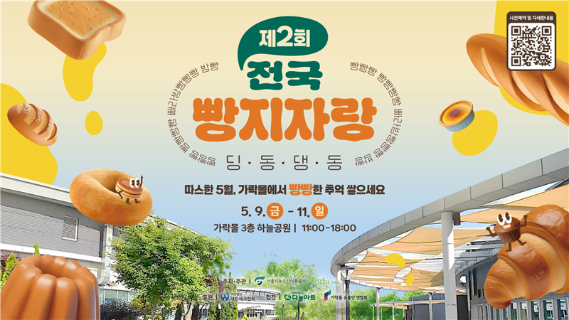 [파이낸셜뉴스] 서울시농수산식품공사는 오는 9일부터 11일까지 가락몰 3층 하늘공원에서 ‘제2회 전국빵지자랑’을 개최한다고 2일 밝혔다.
