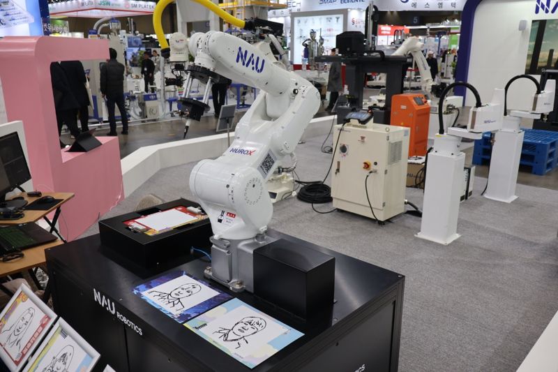 [파이낸셜뉴스] #. 관람객이 사진을 전달하자 로봇 팔이 슥슥 그림을 그리기 시작했다. 수 분만에 로봇은 관람객 얼굴 사진을 기반으로 한 캐리커쳐 이미지를 만들어냈다. 나우로보틱스가 지난 3월 경기도 일산에서 열린 '국제 플라스틱·고무산업전시회'에서 선보인 다관잘 로봇 '뉴로 X(NURO X)'다. 산업용 다관절 로봇을 만드는 나우로보틱스는 8일 코스닥 시장 상장을 앞두고 있다.