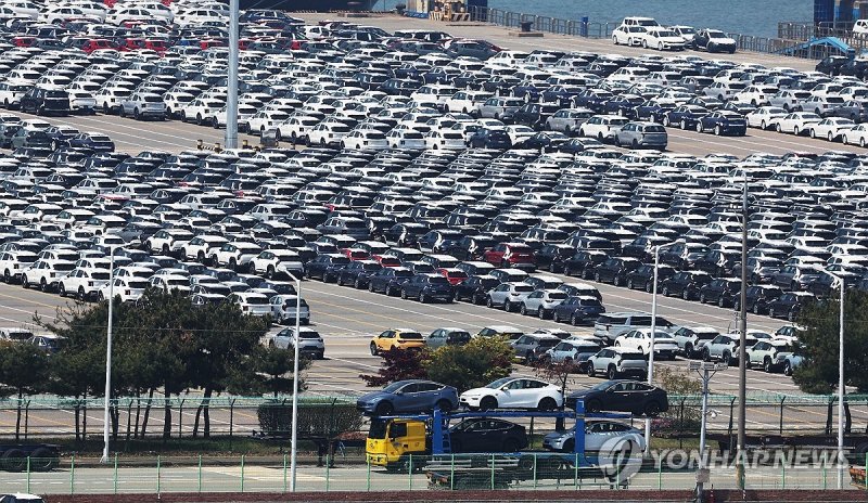 평택항에서 수출 선적을 기다리는 한국산 자동차 / 연합뉴스 제공