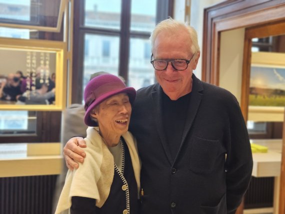 [베니스(이탈리아)=최가영 기자] 서울 용산의 아모레퍼시픽 본사를 공동 작업한 국내 1세대 조경가 정영선과 영국 건축가 데이비드 치퍼필드의 깜짝 만남이 이탈리아 베니스에서 성사됐다.