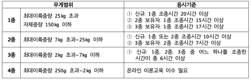 아울러 정부는 무인수직이착륙기 자격 전환을 위한 임시 시험을 시행해 응시 조건을 충족하는 자에 대해 간소화된 절차로 조종 자격 취득 기회를 부여할 계획이다.