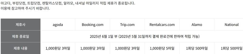 [파이낸셜뉴스] 아시아나항공은 12일 아고다, 부킹닷컴, 트립닷컴, 렌탈카스닷컴, 알라모, 내셔널과의 ‘마일리지 적립 제휴를 종료한다고 밝혔다.